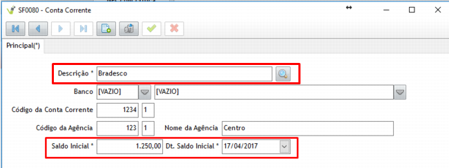 3) Alguma das contas correntes cadastradas e/ou selecionadas, data e saldo inicial informado. [SF0590]