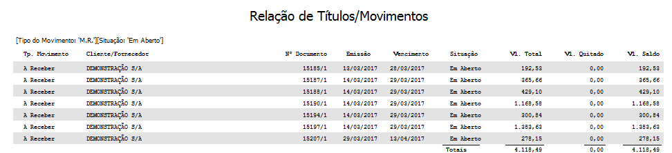 No exemplo abaixo pode-se ver o resultado de uma consulta dos títulos A Receber: