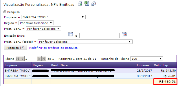 •Foi ajustado para o filtro por Emissão funcionar de modo efetivo.