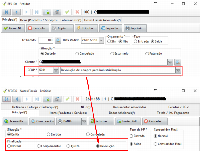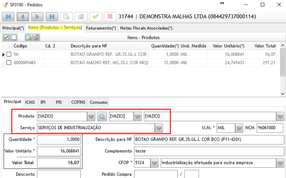 Na tela de Pedidos os campos novos campos também foram incluídos e podem ser alterados conforme a necessidade e de acordo com a legislação: