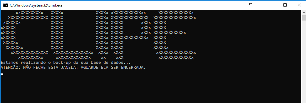 Ao clicar em "Sim", o sistema iniciará o backup mostrando a tela abaixo que NÃO DEVE SER ENCERRRADA, sendo encerrada quando o backup estiver feito.