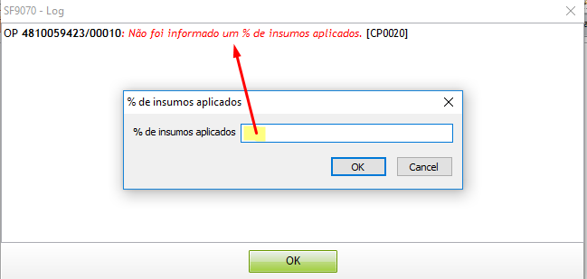 Correção na informação do percentual de Insumos Aplicados (Clientes de Santa Catarina)