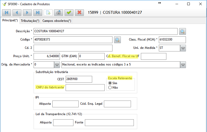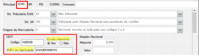 ■No caso dos produtos que contenham CEST, na atualização da versão para 4.0, o sistema assumirá o padrão de informar o campo "Escala Relevante" como SIM.