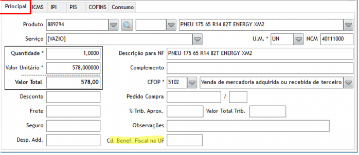 oCd. Benef. Fiscal na UF: Código de Benefício Fiscal utilizado pela UF, aplicado ao item. Obs.: Deve ser utilizado o mesmo código adotado na EFD e outras declarações, nas UF que o exigem.