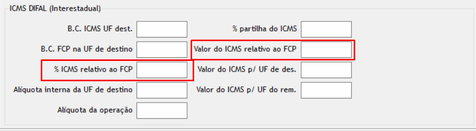 Valor base cálculo FCP R$ 0,00; Valor FCP R$ 0,00 (0,00%); Valor FCP ST R$ 0,00 (0,00%).