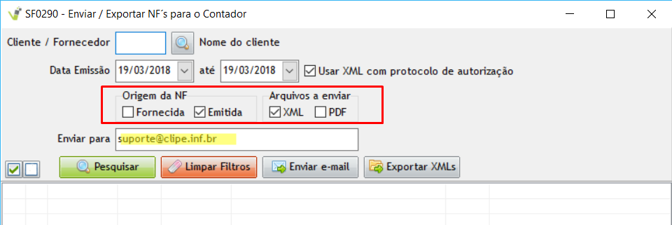 Melhoria nas opções de envio de arquivos XML/PDF da Notas Fiscais [2017110525]