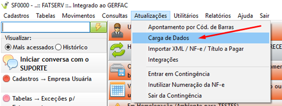 Através do sistema FATSERV você pode falar diretamente com o suporte, por clicar na área destacada "Iniciar conversa com o SUPORTE":