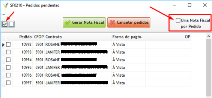 Por exemplo, depois de fazer diversos pedidos ou carregá-los, poderá emitir notas fiscais separadas para cada um deles, mesmo selecionando todos de uma só vez.