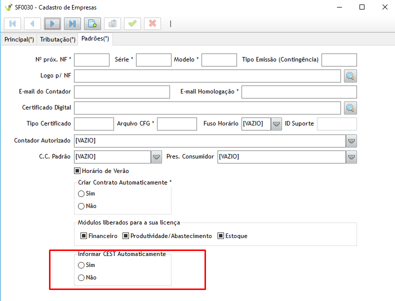 A fim de facilitar para alguns clientes que estão sendo orientados pela sua contabilidade a não informar o CEST, apesar de em nosso entendimento descrito acima, criamos uma parâmetro para permitir que o sistema não exija o CEST conforme determinado pela legislação.