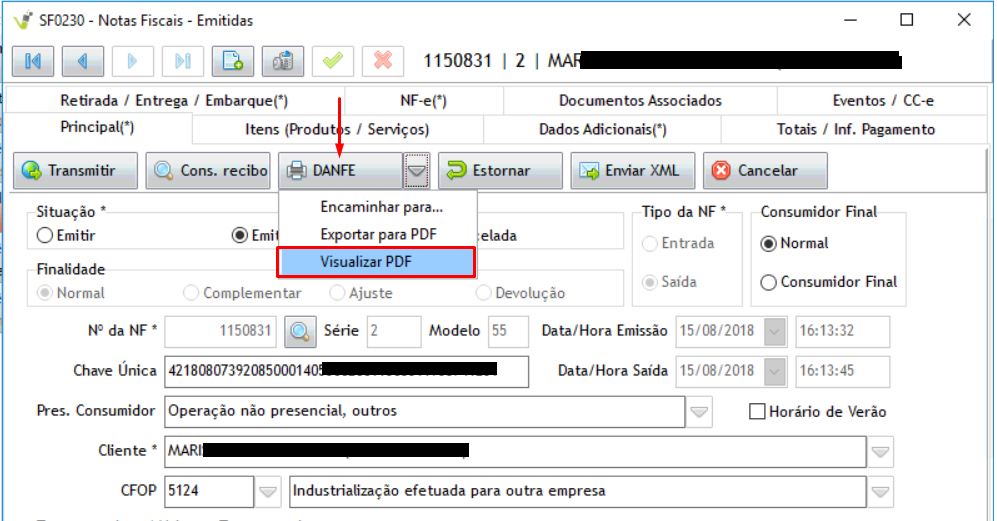 Criado a opção para abrir a nota fiscal emitida no leitor de PDF padrão do computador [2018043708]