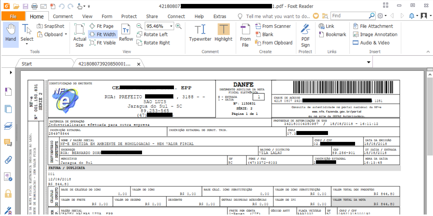 Será aberto o visualizador de PDF padrão do seu sistema com a nota fiscal carregada: