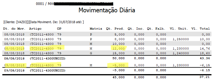Também foi ajustado o cálculo das quantidades para considerar as quantidades negativas lançadas no mesmo dia, listando somente as quantidades positivas, e caso tenham ficado zeradas, nem listar.