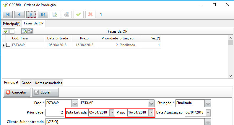 Foram efetuados ajustes para permitir alteração dos campos destacados: "Data Entrada" e "Prazo". Também foram incluídas críticas para validar a entrada de dados.