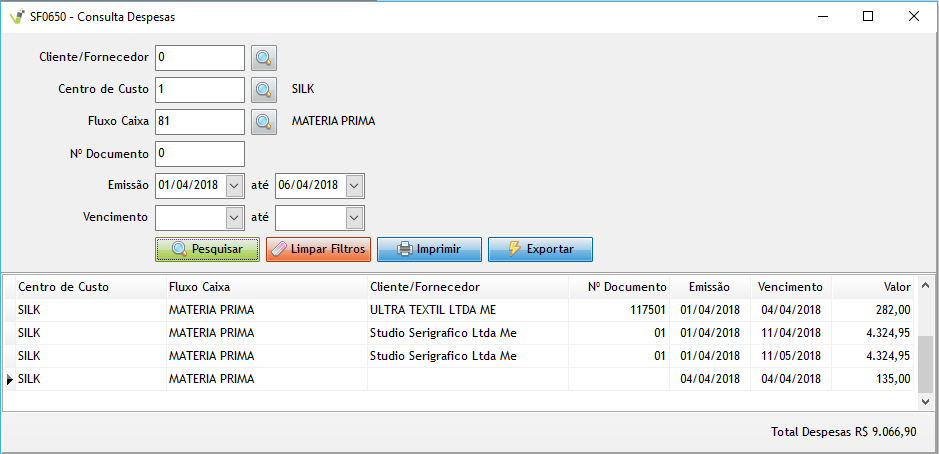 Ajuste na tela de Consulta Despesas (SF0650) [2018071722]